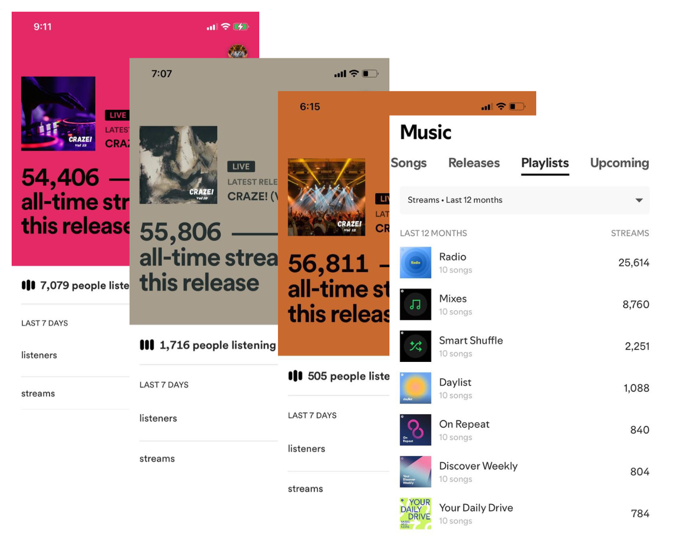 Watch your streams, listeners, and engagement grow as data updates on your Spotify for Artists dashboard.